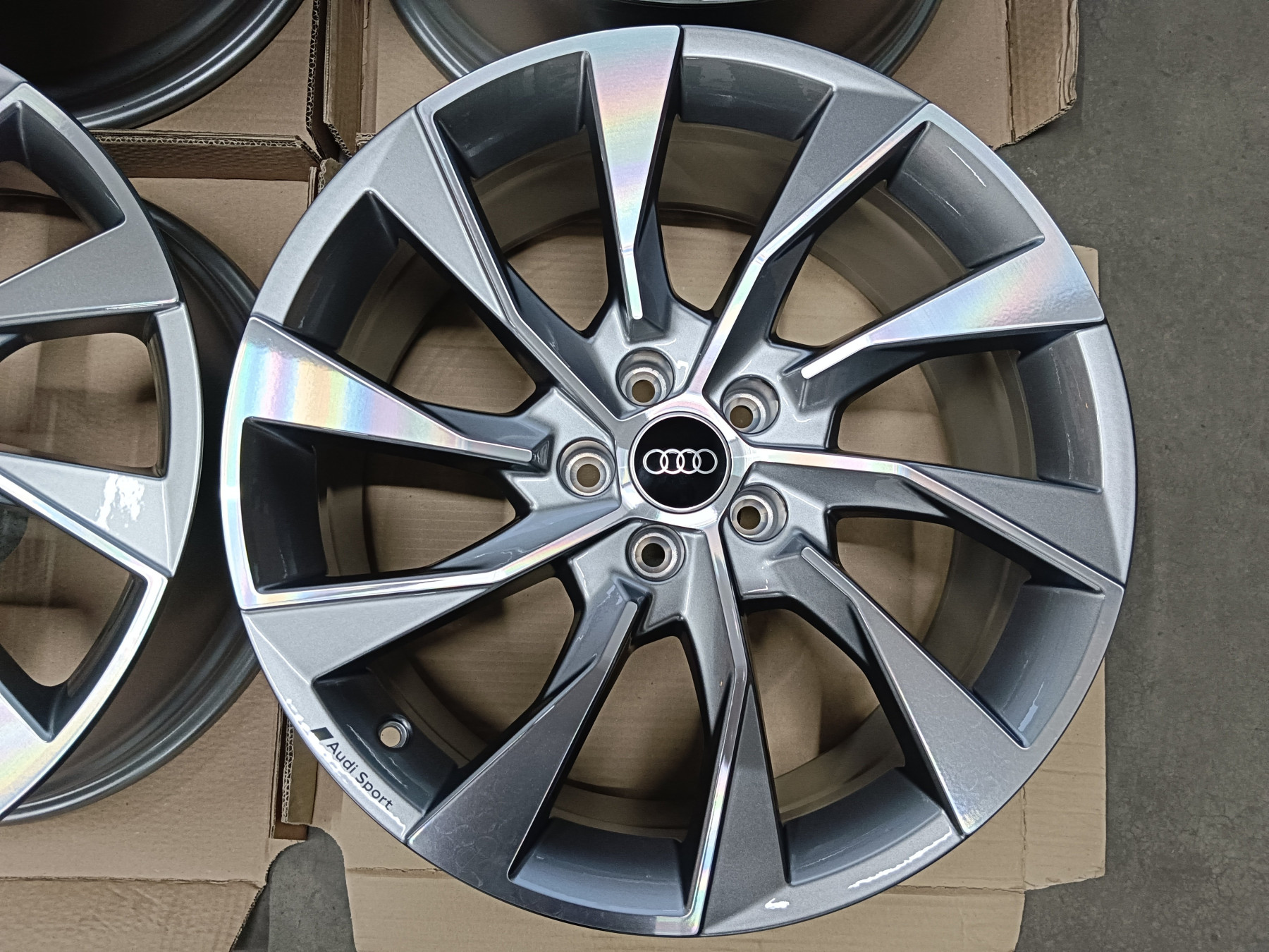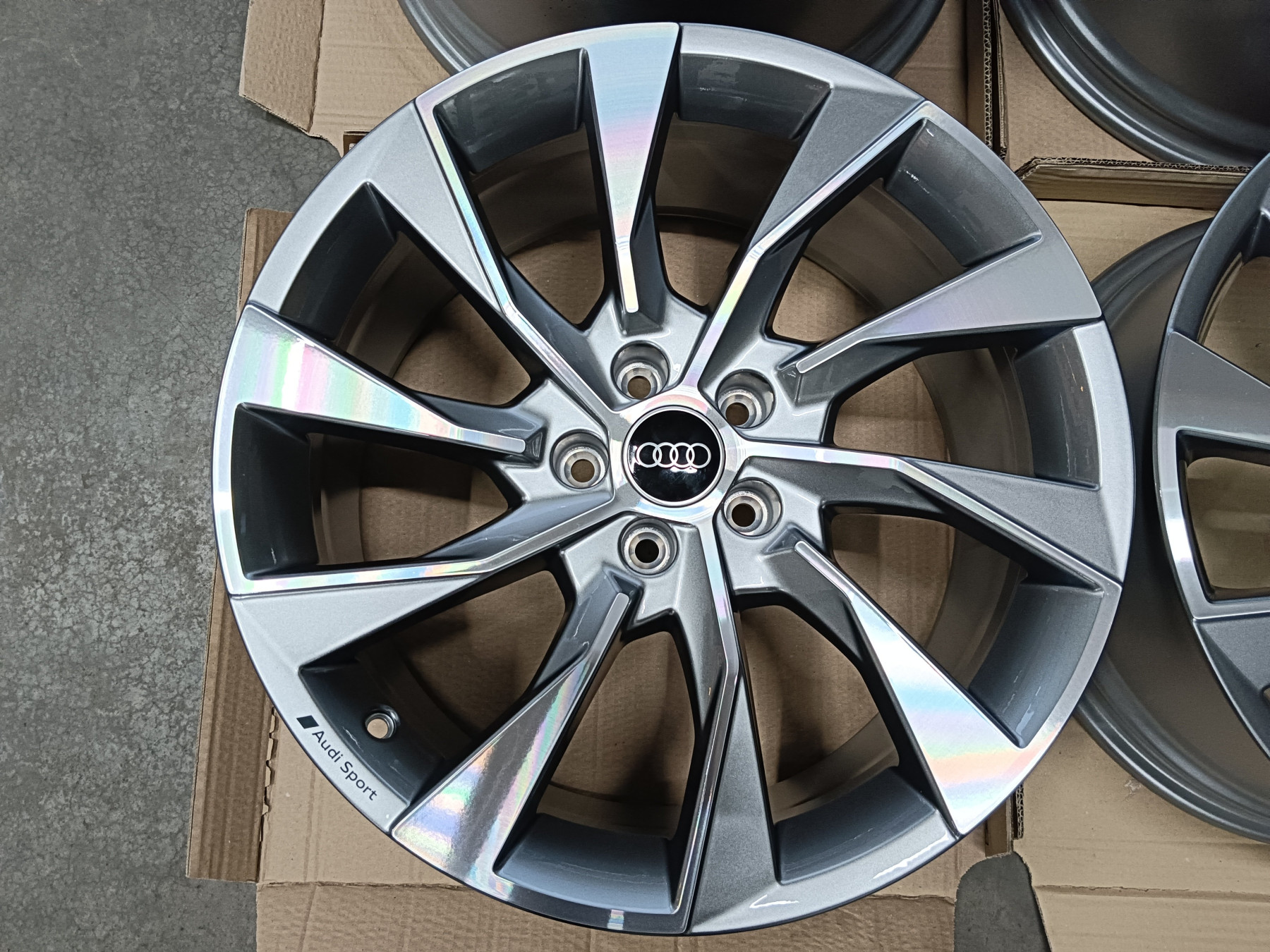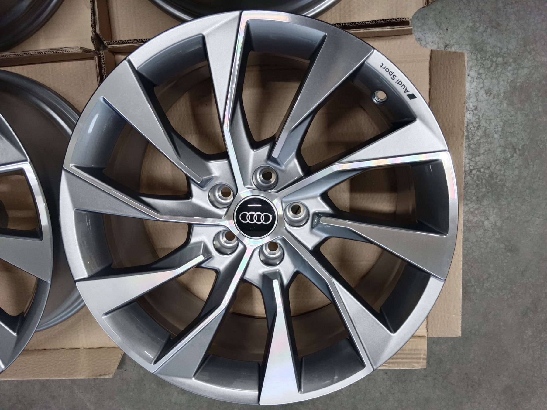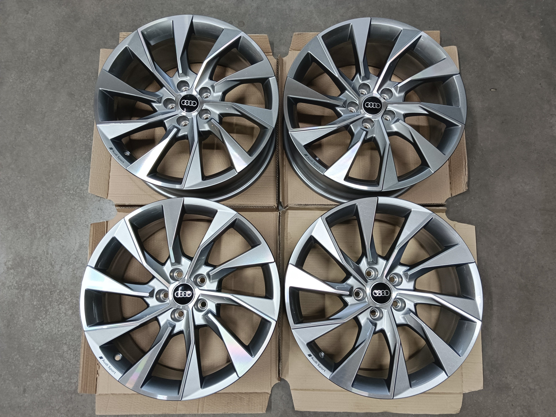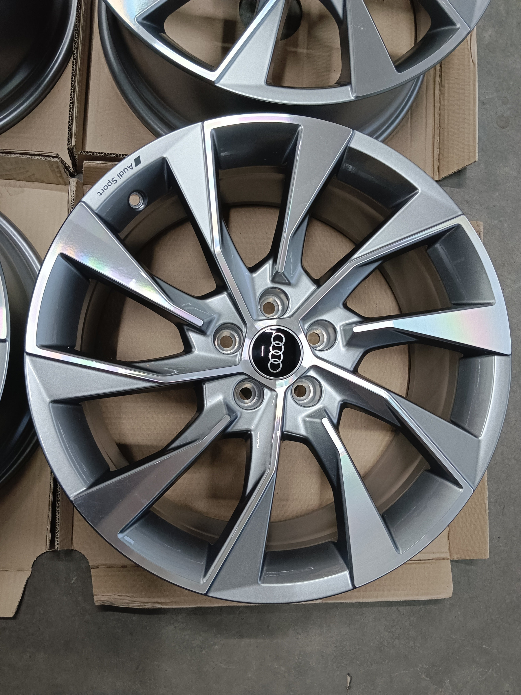 Originale Audi Alufelgen S Line 8,5x19 et40 8W0 601 025 EL 5x112 66,6mm Felgen sind in neuwertigen Zustand. Ohne Beschädigungen, nicht nachlackiert, nicht nachträglich repariert oder sontiges. Original Zustand wie Neu. Rundlauf natürlich 100%. 1.375€ Komplettradsatz (4 Stück) inklusive Audi Nabendeckeln - Detail Informationen